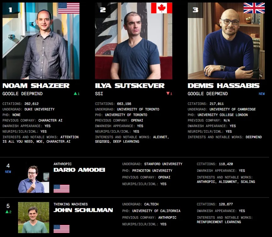 人工智能领域飞速发展,但究竟谁才是站在最前沿、推动技术突破的研究者?最近,TBPN 推出了一个名为 “Metis List” 的榜单,列出了全球最具影响力的AI研究员。这个榜单的有趣之处在于,它既参考了学术影响力,也加入了一些同行评议和大众视角,因此更像是一份“AI明星榜”。
